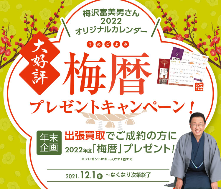期間中に出張買取でご成約をいただいた方全員に「梅暦」カレンダーをプレゼント。