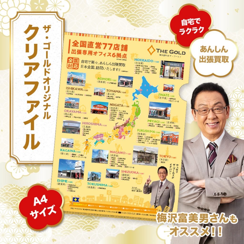 こちらの「クリアファイル」は、全店直営の「ザ・ゴールド」77店舗が日本地図で一覧できるデザインとなっております。