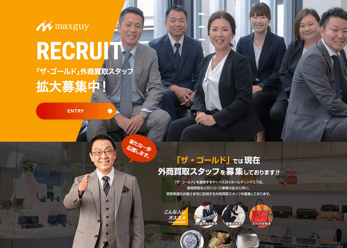 買取専門店「ザ・ゴールド」を運営するマックスガイでは、来年創業60周年を迎えます。 この節目に向けて、現在、日本全国からお寄せいただいている「出張買取」のご要望に対して、より多くのお客さまのご期待に沿えるよう新拠点を開設、「外商買取スタッフ」を拡大募集しております。 ...