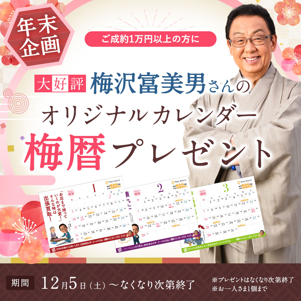 株式会社マックスガイが運営する買取専門店「ザ・ゴールド」では、日頃のご愛顧に感謝を込めて、梅沢富美男さんが「ザ・ゴールド」のサービスを毎月ご案内するオリジナルカレンダー【梅暦 (うめごよみ)】 (非売品)を作成いたしました。 ザ・ゴールドのオリジナル「梅...